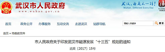 武漢市能源發(fā)展“十三五”規(guī)劃