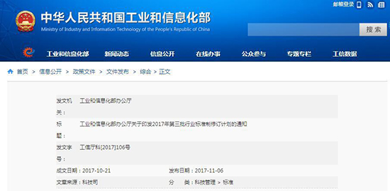 工信部2017年第三批行業標準制修訂計劃 涉及多項環保標準