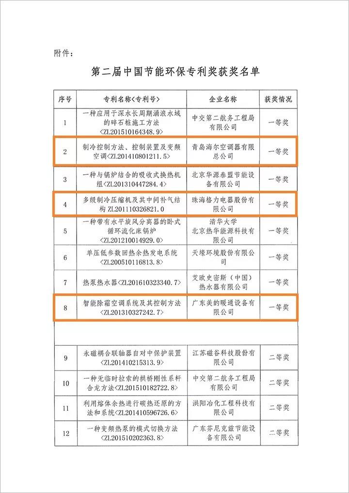 此次獲獎名單里,更是有海爾空調、格力電器、美的暖通等知名大公司獲得了一等獎、二等獎,這也足以看出這次的中國節能環保專利評選含金量非常高!