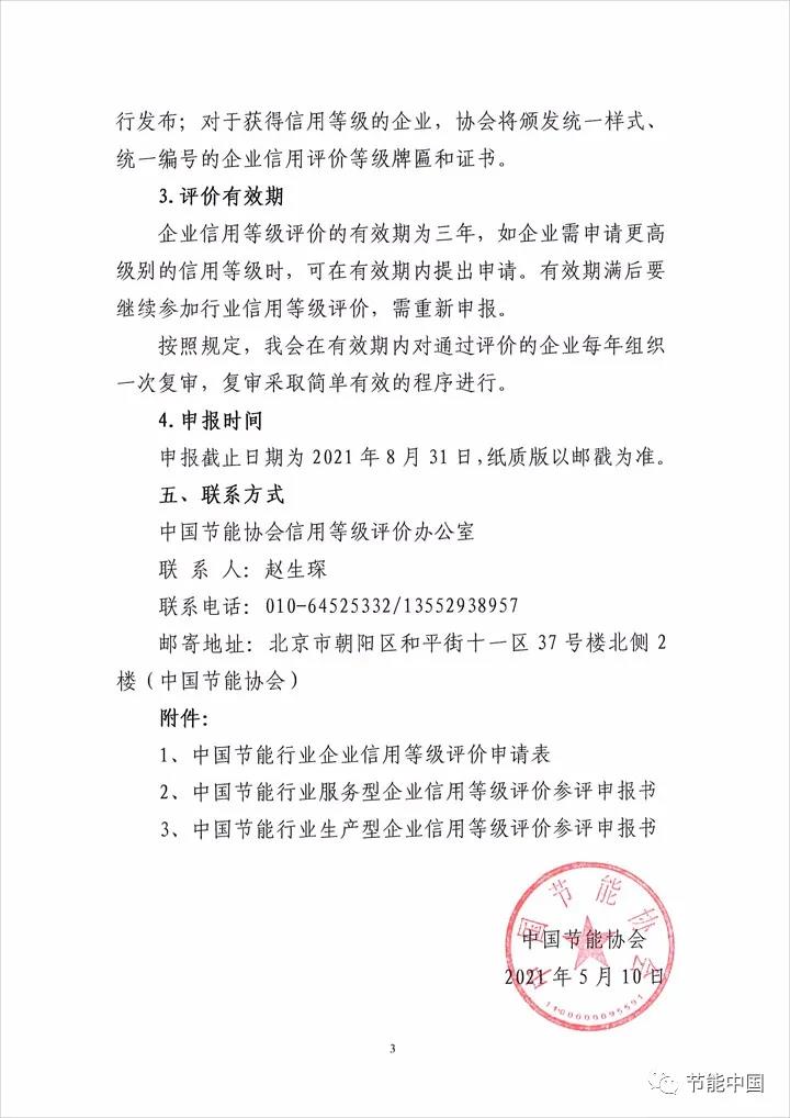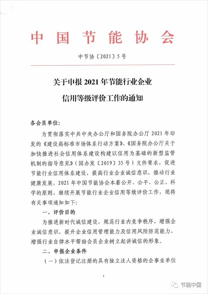 關于申報2021年節能行業企業信用等級評價工作的通知