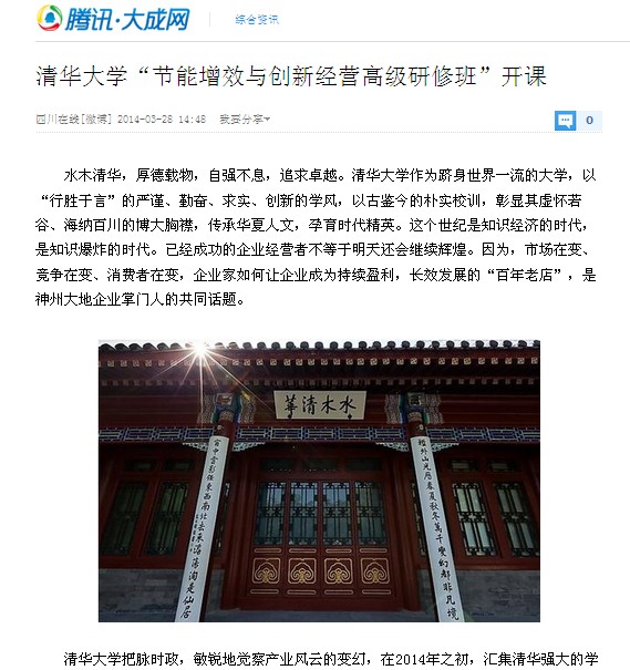 清華大學(xué)“節(jié)能增效與創(chuàng)新經(jīng)營高級研修班”開課
