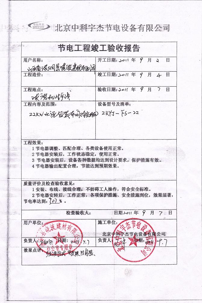 安裝調試驗收,節能效率達到30.7%,投資回報期一年半,按質保十年計算,此項節能工程能為山西洪洞縣曉波建材有限公司帶來四百多萬人民幣的直接經濟效益。