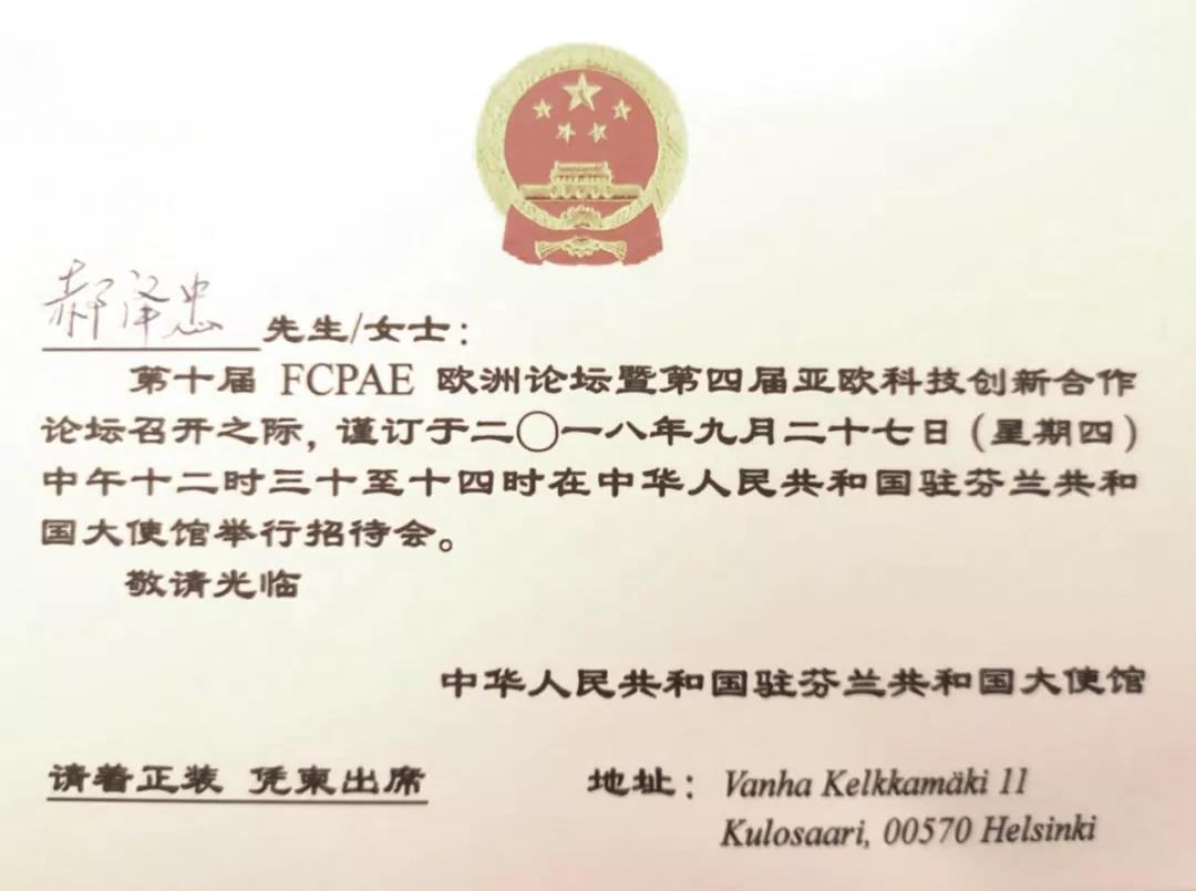 全球公益系列活動在芬蘭傳遞期間正值第十屆FCPAE歐洲論壇暨第四屆亞歐科技創(chuàng)新合作論壇在芬蘭赫爾辛基召開,倡導環(huán)保節(jié)能低碳的公益活動得到了論壇舉辦方以及中國駐芬蘭大使館的廣泛關注和大力支持,以中科宇杰董事長郝澤忠為代表的宣傳團一行受邀出席中國駐芬蘭大使館招待會。